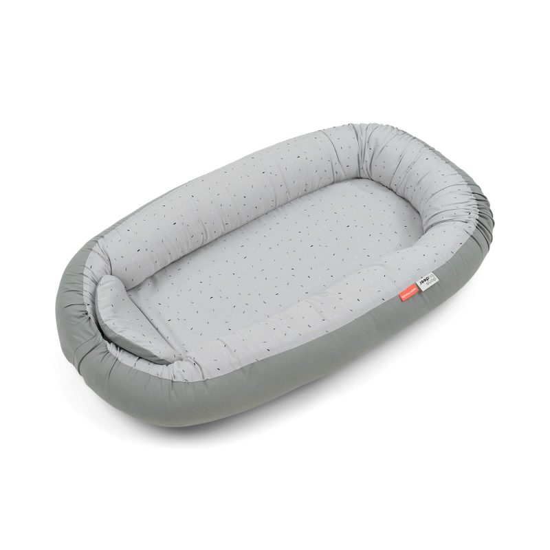 Med høye, myke kanter skaper reiret en koselig atmosfære som hjelper babyen å føle seg trygg og roe ned, samtidig som du får begge hender fri til å lage mat, svare på meldinger, eller bare nyte en kopp kaffe i fred. Ideell for lek, magetid (tummy time), lur på gulvet eller ved siden av deg på sofaen – alltid under oppsyn.