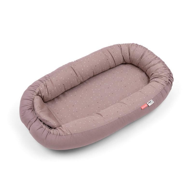Med høye, myke kanter skaper reiret en koselig atmosfære som hjelper babyen å føle seg trygg og roe ned, samtidig som du får begge hender fri til å lage mat, svare på meldinger, eller bare nyte en kopp kaffe i fred. Ideell for lek, magetid (tummy time), lur på gulvet eller ved siden av deg på sofaen – alltid under oppsyn.