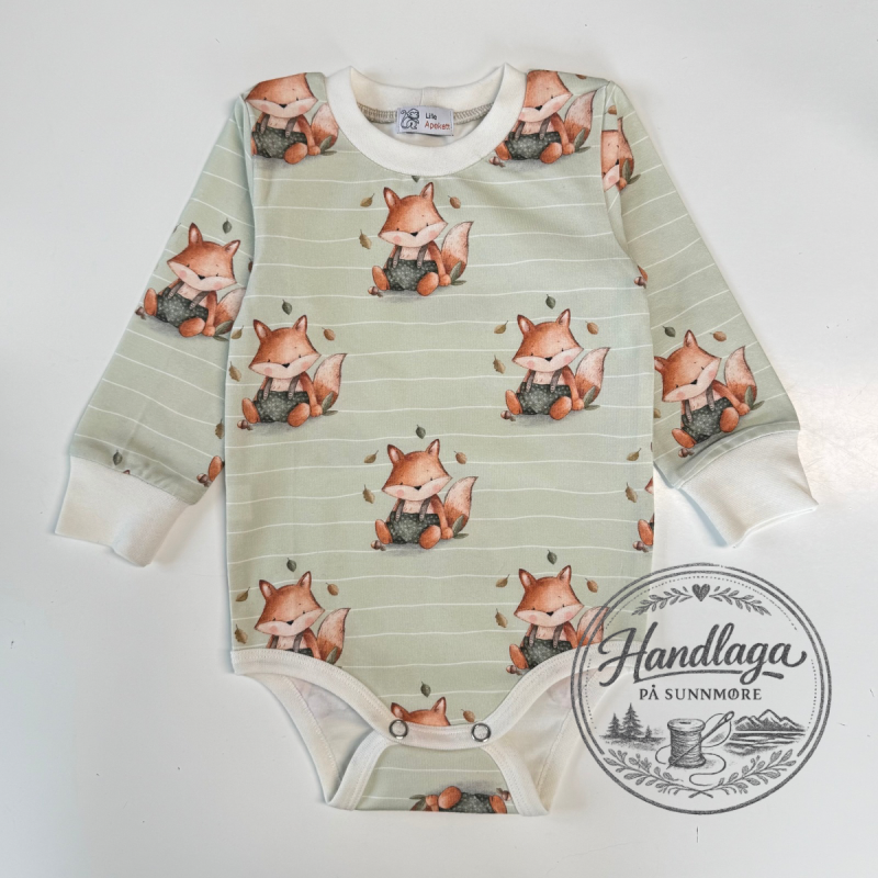 Myk og deilig body, håndsydd på Sunnmøre. Romperen er laget i økotex-sertifisert bomull og er god og myk mot barnehuden. Det er god strech i halsåpningen slik at den er lett å ta av og på. To trykknapper i skrittet. God i størrelsen, så den varer lenge. Ermene er enkle å brette opp om man ønsker å utnytte seg av den håndsydde bodyen enda lengre.