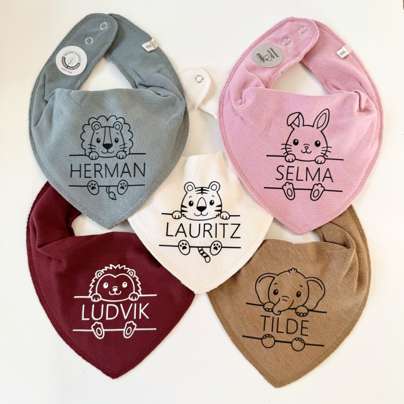 Velg hva som skal stå på smekken, om det er navn eller noe annet! Det gir et personlig preg og er perfekt å gi i gave til den som venter baby eller allerede har en liten en.