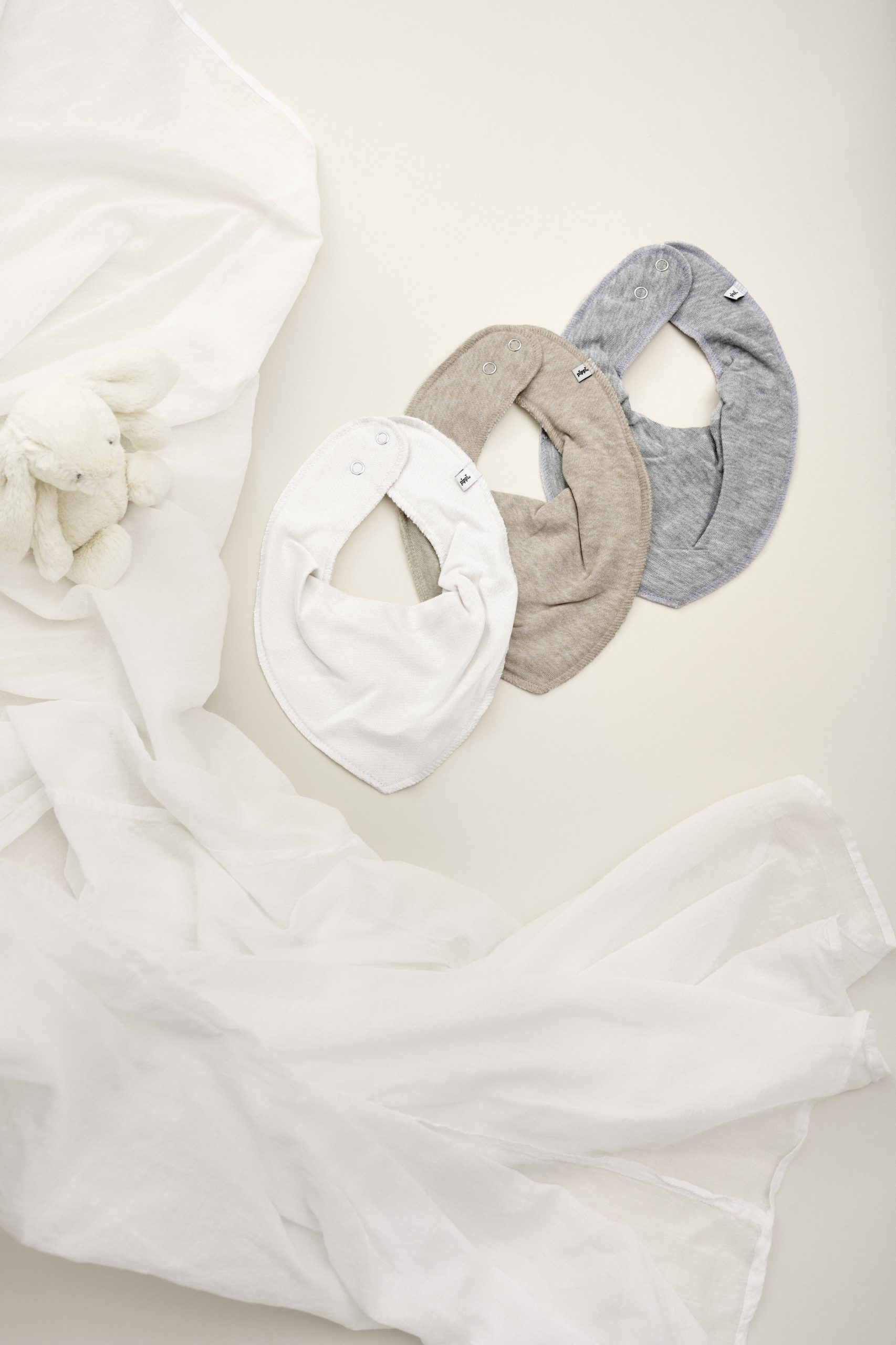 Myke siklesmekker i økologisk bomull. Siklesmekken består av tre lag; to lag stoff med et vanntett stoff i midten som hindrer væske å trekke gjennom. Babysmekken er behagelige for barnet og ha på. Smikken kan justeres med to praktiske trykknapper i nakken.