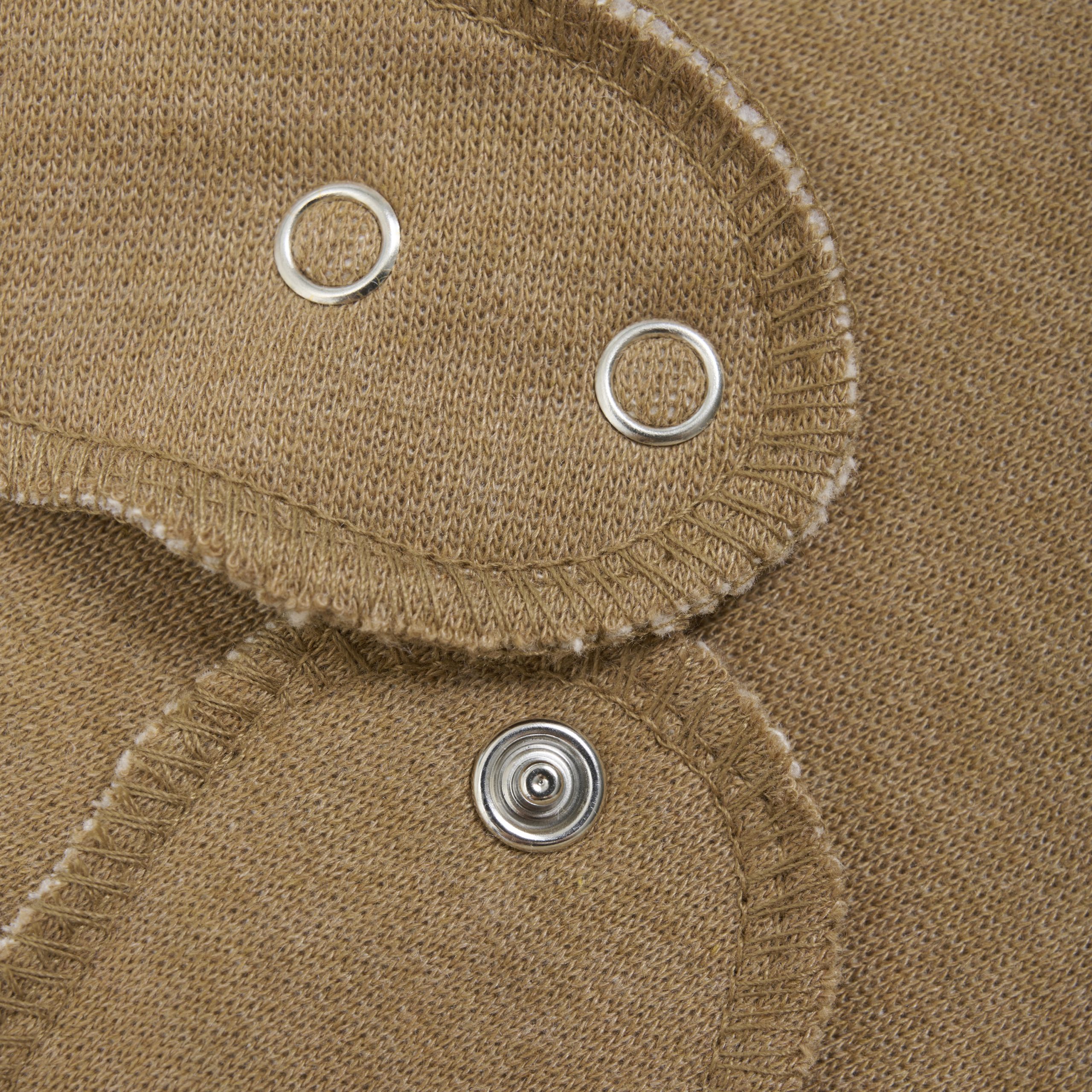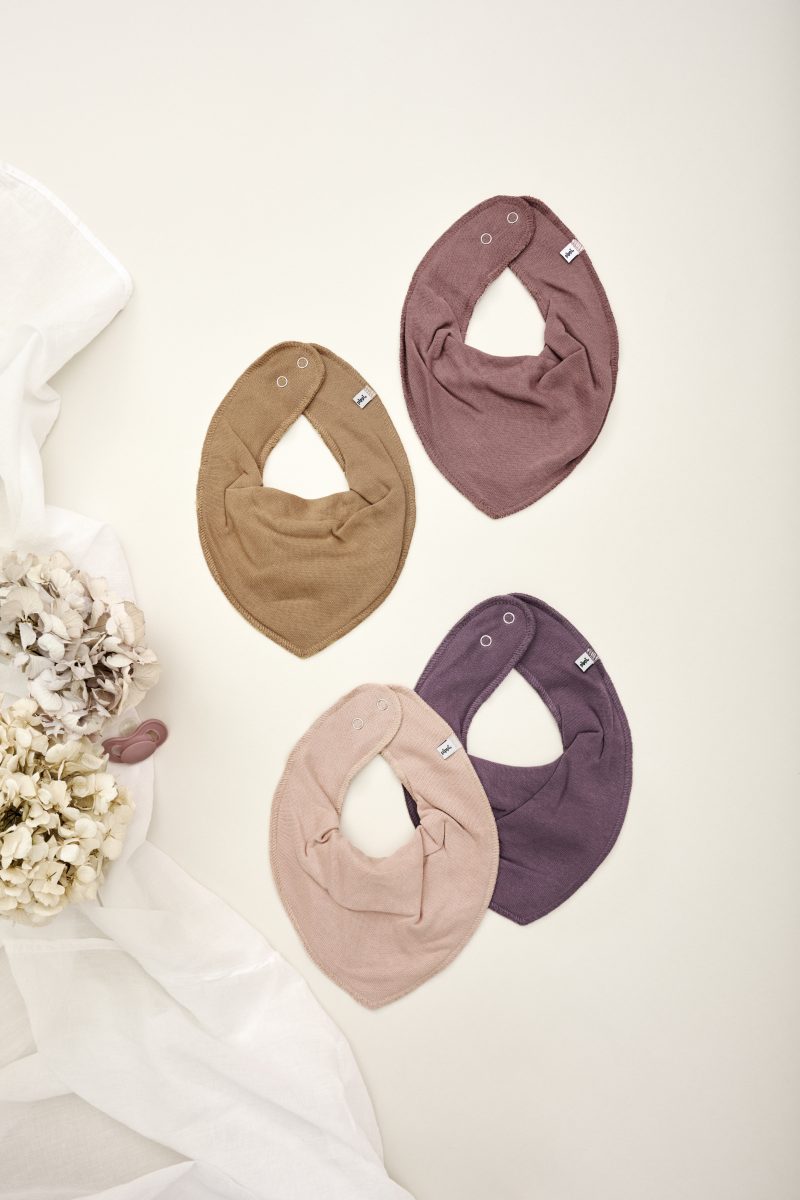 Myke siklesmekker i økologisk bomull. Siklesmekken består av tre lag; to lag stoff med et vanntett stoff i midten som hindrer væske å trekke gjennom. Babysmekken er behagelige for barnet og ha på. Smikken kan justeres med to praktiske trykknapper i nakken.