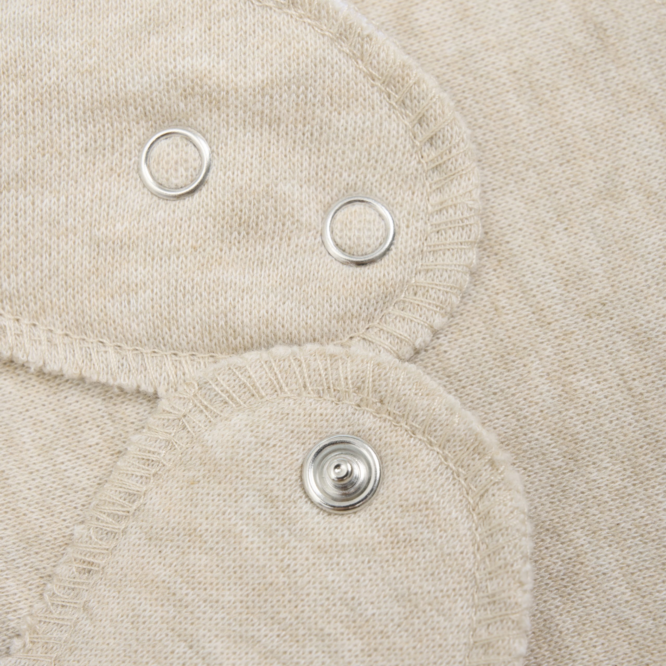Myke siklesmekker i økologisk bomull. Siklesmekken består av tre lag; to lag stoff med et vanntett stoff i midten som hindrer væske å trekke gjennom. Babysmekken er behagelige for barnet og ha på. Smikken kan justeres med to praktiske trykknapper i nakken.